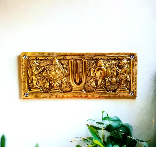 Gold Plated Metal Tirupati Balaji Shankhu Chakra Namah Door Hanging for Home, Office & Room Decorative Showpiece - 8 cm (Metal, Gold)